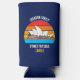 Personalised Australia vacation keepsake seltzer can cooler featuring the Sydney opera house in front of an Australian sunset above cool blue water. Cute custom family trip souvenir.