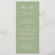 Modern wedding menu featuring a contemporary typographic design with "let's eat" in elegant script typography. Below are your event details in a your names, wedding date and menu in a simple and minimal layout. The colour theme is sage green and may be changed the design editing tool.