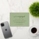 Modern wedding save the date card featuring a contemporary typographic design with "we're engaged" in elegant script typography. Below are your event details in a simple and minimal layout. All text on the front is in real foil over a sage green background.