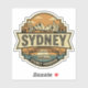Say G'day to the Harbour City with this stylish vintage travel badge! The artwork features a retro-style emblem showcasing Sydney's world-famous skyline, highlighted by the architectural masterpiece of the Sydney Opera House. Below the bold "SYDNEY" banner spans the majestic Sydney Harbour Bridge ("The Coathanger"), with a classic ferry boat and sailboats cruising the water. Rendered in a nostalgic palette of muted teal, rust, and cream, this design is the perfect souvenir for Aussies and international travelers alike.