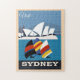 A vibrant depiction of Sydney's iconic Opera House is complemented by colourful sailboats in the foreground. The Harbour Bridge forms a striking backdrop, inviting visitors to explore the city's beauty.