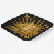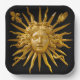 Symbol of Louis XIV the Sun King (Roi Soleil) on the golden gate of Chateau de Versailles with black background