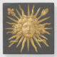 Symbol of Louis XIV the Sun King (Roi Soleil) on the golden gate of Chateau de Versailles with black background