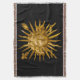 Symbol of Louis XIV the Sun King (Roi Soleil) on the golden gate of Chateau de Versailles with black background