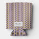 Strings of diamonds and spots, printed in blue, peach and shades of brown. Name label can be removed. Text can easily be customised or removed.