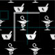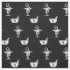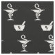 A custom fabric featuring two signature symbols of pharmacy a bowl of Hygenia and a mortar and pestle with a solid black background.