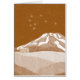 An illustration of Syme hut on Fathoms Peak, with Mt Taranaki in the background. This design is drawn in a brown monochrome and has the Matariki stars above it in the sky. A design for anyone who loves hiking and tramping in New Zealand.