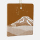 An illustration of Syme hut on Fathoms Peak, with Mt Taranaki in the background. This design is drawn in a brown monochrome and has the Matariki stars above it in the sky. A design for anyone who loves hiking and tramping in New Zealand.