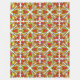 Beautiful symmetrical abstract pattern in red, orange and green featuring hearts and organic shapes.