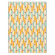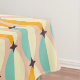 Symmetrical retro pattern with interlocking teal, yellow, and orange shapes on a beige background. Black star-like accents add contrast, creating a vintage feel.