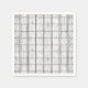 A symmetrical pattern features vertical and horizontal wooden panels with a worn, rustic appearance, showcasing a faded white finish