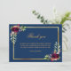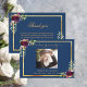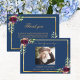 A simple and elegant sympathy thank you card with photo. A navy blue background, a faux gold frame and burgundy florals. Personalise and add your thank you note.