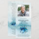 At the forefront, a touching photo of your loved one is accompanied by the heartfelt words "In Loving Memory of," followed by your loved one's name and dates, elegantly presented amidst the graceful blue florals. This poignant tribute captures the essence of your loved one's spirit and their enduring impact on all who knew them.