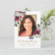 Thank your family and friends for attending your loved one's funeral and their kind notes with this elegant personalised floral photo thank you card. This elegant design template features a photo on the front with a faux gold frame accented by red and white roses with greenery. Below in gold script it reads "In Loving Memory" with a name and date to personalise. The back of the card has your thank you message, signature, and quote for you to customise as well accented by a red rose blossom. Designed by Susan Coffey.