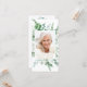 This elegant custom photo sympathy funeral prayer card features a photo bordered by hand painted watercolor eucalyptus greenery and below it reads in faux gold script "In Loving Memory" with a name, dates to personalise. The back of the card has a prayer accented by a sprig of eucalyptus greenery on a background of white. Designed by artist Susan Coffey.