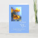 This sympathy funeral thank you card features a beautiful yellow orange cosmos flower outside. A beautiful blue surrounds the flower along with the words "Thank You for your kind expression of sympathy." A lovely sympathy thank you verse is inside. Copyright Kathy Henis