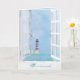 Open window with red and white striped lighthouse with sailboat for sympathy