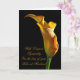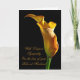 A stately golden arum lily stands lit from the side . A perfect flower to convey words of sympathy.