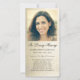 This elegant photo sympathy memorial funeral card features a custom photo and below on a faux gold textured background it reads in black script "In Loving Memory" with a name, dates and memorial message accented by a floral flourish divider. The back of the card is faux gold. Designed by artist ©Susan Coffey.