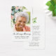 Send this elegant custom floral memorial card to family and friends in remembrance of your loved one. This design features a photo on the front bordered with hand painted blush pink and blue watercolor roses with greenery. Below in black script are the words "In Loving Memory" with a name and dates to personalise. The back of the card has a poem which may be kept as is or customised accented by a delicate pink rose with stem. Designed by Susan Coffey.