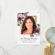 Thank your family and friends for attending your loved one's funeral and their kind notes with this elegant personalised floral photo thank you card. This elegant design template features a photo on the front with a faux gold frame accented by hand painted red and white watercolor roses with greenery. Below in black script it reads "In Loving Memory" with a name and date to personalise. The back of the card has your thank you message, signature, and quote for you to customise as well accented by a red rose blossom. Designed by Susan Coffey.