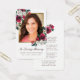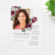 Send this elegant custom floral prayer card to family and friends in remembrance of your loved one. This design features a photo on the front framed in faux gold with hand painted red and white watercolor roses with greenery. Below in burgundy script are the words "In Loving Memory" with a name and dates to personalise. The back of the card has a poem which may be kept as is or customised accented by red roses. Designed by Susan Coffey.