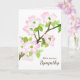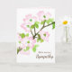 A thoughtful sympathy card featuring a pretty branch from a blooming dogwood tree painted with watercolor. On the inside is a Bible verse from the book of Psalms 34:18 and more dogwood blossoms illustrated with pencil. A soft shade of pink on the right can be edited as can the text to fit your needs.