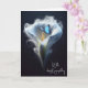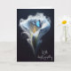 Delicate white lines of a calla lily blossom swirl gracefully around a central orange stamen with a Blue Common Morpho butterfly for sympathy.