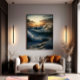 The sea rises in monumental waves illuminated by the golden sunset. The raw power of nature meets the poetry of light, creating a scene of both intensity and serenity. A celebration of the infinite energy and majestic beauty of the ocean.