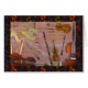 Against a background of reddish wooden planks are displayed all the instruments of the symphony orchestra. This card would be appropriate for any number of occasions, as an invitation, announcement, thank-you, or simply to write a note, to or from musicians and music-lovers.
