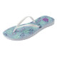 Look closely at this geometric pattern and you'll see that it features illustrations of synchronised swimmers in formation in shads of deep purple, medium purple. lavender and pale green set against an aqua blue or light teal background with polka dots accents. Create some personalised flip flips for your favourite sychro swimmer when you add their initials or monogram. Also makes a fun gift for synchronised swimming coaches.
