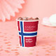 Celebrate Syttende Mai, the Norwegian Constitution (National) Day, with these striking May 17th paper cups, which feature the iconic red, white, and indigo blue colours with the Scandinavian cross of Norway's national flag.