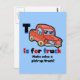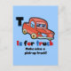 Anyone who loves trucks and cars will love this cute T is for Truck T-shirt, tote bag, mousepad, stickers, and more with a red pickup truck with eyes and a smile and text that reads "T is for Truck! Make mine a pickup truck!".