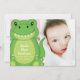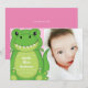 Adorable t-rex dinosaur baby announcement photo cards in pink are perfect for telling friends and family about your new baby girl! The cute cartoon dino is both fun and sweet!