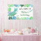 This adorable design features hand painted watercolor dinosaurs and tropical leaves.