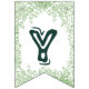 T-Rex Dinosaur and Jurassic jungle foliage watercolor Happy Birthday bunting. Ideal for a boy or girls dino birthday party of any age especially Jurassic jungle themed celebrations. The words Happy Birthday in Modern fun dark green typography. Original artwork by artist Catherine Sweetman