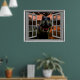 T-Rex Dinosaur Sunset View Faux Window Poster