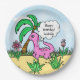 Cute hand drawn cartoon pink dinosaur birthday plates for a little girl's dinosaur themed birthday party.