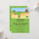 A fun birthday party invitation with a dinosaur theme. The design features a fierce T-Rex in an arid landscape with a distant erupting volcano. The Tyrannosaurus is green with purple markings. All wording can be fully personalised with the details of your child's fourth birthday party. The theme is tied together with a dinosaur footprint pattern on the reverse of the invite.