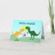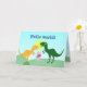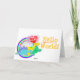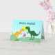 Cute Cartoon T-Rex Family Dinosaur with Dino Baby Egg Hello World Card. 3 cute little T-Rex cartoon dinosaurs, orange & green T-Rex and baby T-Rex egg in a happy bright sunny landscape with the text "Hello world!", change text to any text. Inside the card a sweet little pink baby T-Rex dino egg with customisable text. Add your name and text. Personalise with your images and texts! A sweet Tyrannosaurus Rex dinos card for a birth announcement or baby shower!