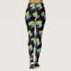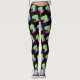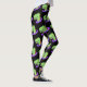 This pair of leggings has an illustration of cute cartoon T-Rex head popping out of a purple ring. It is a fun design suitable for all.