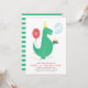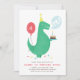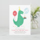 A birthday party invitation for kids, featuring a T-rex dinosaur and a balloon.