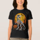 A fearsome T-Rex skeleton stalks through a haunted scene, carrying a jack-o’-lantern pail beneath a glowing orange moon. Twisted trees and fluttering bats add classic spooky energy while crisp lines keep it bold and graphic. Perfect for dinosaur lovers who want Halloween flair with a playful twist. Great for parties, pumpkin walks, and October vibes.