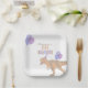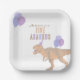 Change FIVE to any age you need. These cute T-Rex dinosaur paper plates are ready to be customised by you. Add your child's name at the top of this FIVE ASAURUS design, adjust the age as needed and add a custom touch to your dinosaur birthday party table décor. These small square paper plates are designed in a gender neutral colour palette of shades of brown, tan, peach, blue and purple which work great for either a boy or a girl. Create a fun dinosaur themed party for your little dinosaur lover's birthday with these cute personalised dino paper plates.