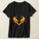 Angel fire heart with flaming wings on black background.