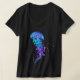 Large, blue, artistically drawn, glowing, bright jellyfish, with long tentacles on black background with purple bioluminescence. Luminous jellyfish.