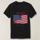 This men's T-shirt features a large, vibrant American flag emblazoned across the front, its stars and stripes vivid and bold, symbolising the spirit of freedom and national pride. Centred over the flag is a prominent "TRUMP 2024" in striking red and blue lettering, set against the flag’s backdrop to make a powerful statement.