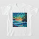 Let the surreal beauty of this seascape painting transport you to a world of tranquility, where a mesmerizing sunset collides with iridescent, opal, and jade tones.