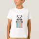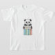 An adorable digital illustration featuring a scholarly panda cub resting comfortably atop a playful arrangement of books. The cheerful character smiles gently while leaning over two horizontal hardcovers, with a neat row of vertical spines in pastel shades of mint, pink, blue, and yellow supporting him from below. The artwork uses clean lines and a charming, cartoonish style to highlight the panda's friendly personality and the colorful literary setting.