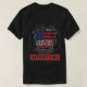 This T-shirt design features a commemorative theme for Patriot Day, marked by the text "09.11 NEVER FORGET" and "PATRIOT DAY" in bold, eye-catching typography. The centerpiece includes an American flag styled within a circular emblem, emphasizing patriotism and remembrance. The black T-shirt background contrasts sharply with the red, white, and blue of the flag and text, ensuring the design stands out.
